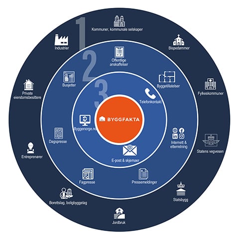 Våre researchere henter inn informasjon om hvem som bygger, hva som bygges, hvor og når det bygges. Vi gjennomfører daglige intervjuer med byggherrer, arkitekter, konsulenter, entreprenører m.m. i hele landet for å oppdatere alle byggeprosjekter – i alle faser av byggearbeidet. Vi kan skreddersy informasjon i Norge, så vel som i Sverige, Danmark og Finland.
